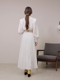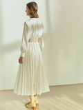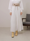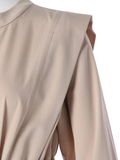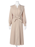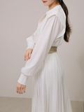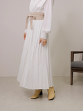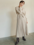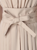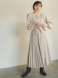 ふわりと揺れ広がるプリーツデザインが、エレガントな女性らしい印象を演出してくれます。ショルダータックで肩周りや二の腕を華奢に見せてくれる効果も◎