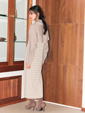 インナーニットのランダムボーダー柄をエレガントな色味で表現する事で、カジュアルになり過ぎない様なカラーリングにこだわりました。それぞれ単品でも活躍してくれるアイテムがセットになっているので、手持ちのアイテムと合わせてレイヤードを楽しんだりと、様々な活躍が期待できます。