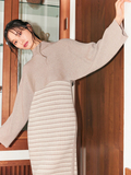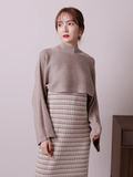 フリルヨークデザインのショート丈ニットに、ノースリーブのハイネックニットワンピースを合わせた2点セット。身体のラインをやさしく包み込むタイトワンピースで適度なユルさがありながら、トップスのコンパクトな丈感によりトレンド感と脚長効果をプラス。