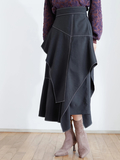 バイカラーのステッチがアクセントになった立体的なデザインスカート。