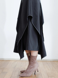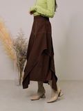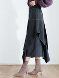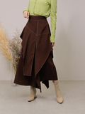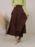 バイカラーのステッチがアクセントになった立体的なデザインスカート。