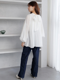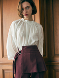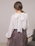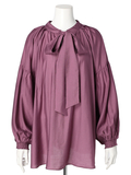 【2WAYリボンで様々なスタイリングを楽しめる】衿周りのタックとしなやかな素材の組み合わせによる、エレガントで立体的なフォルムが美しいブラウス。長めのボウタイリボンがアクセントになった女性らしさ満点のトップスです。裾はインでもアウトでも合わせやすく、リボンは前後どちらでも着用可能で、着回し力が高いのも嬉しいポイント。 定番のモノトーンカラーに落ち着いたブルーと華やかなパープルの4色展開。シンプルに見えますがトレンドをしっかりとおさえたデザインに着心地の良い素材で、色違いで欲しくなってしまうようなヘビロテ間違いなしの人気ブラウスです。※照明の関係により、実際よりも色味が違って見える場合があります。またパソコン・スマートフォンなどの環境により、若干製品と画像のカラーが異なる場合もございます。予めご了承ください。※商品画像はサンプルのため、色味やサイズ等の仕様に変更がある場合がございますので、予めご了承ください。