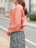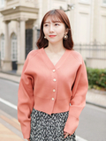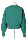 スウェットの様な素材感のポリエステルニットで編み上げたニットカーデ。
