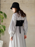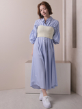 カジュアルになりがちなストライプシャツワンピースですが、ビスチェを合わせて着る事でスタイルUP効果もあり、女性らしい着こなしに大変身。