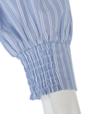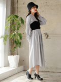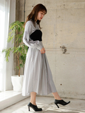 爽やかな春らしいライトブルーストライプにはホワイトのビスチェ、クールなグレーストライプにはブラックのビスチェを組み合わせました。