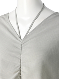 鎖骨ラインを綺麗に見せてくれるVネックデザインにホルターネックリボンを追加する事で、Vネックが苦手な方にも挑戦していただきやすくアレンジ。