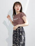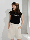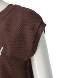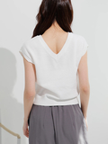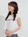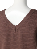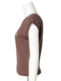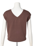 肩周りや二の腕を華奢な印象に見せてくれるフレンチスリーブとボディー部分はすっきりとモタつかないシルエット。表面感のある編み地使いもさりげないポイント。