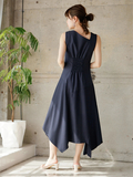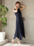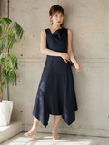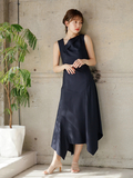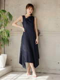 複雑なアシンメトリー切替でモードな雰囲気が纏うデザインワンピース。