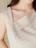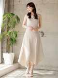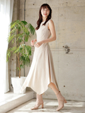 鎖骨ラインを綺麗にみせてくれるアシンメトリーな襟元が女性らしさを演出し、動くたびにひらりと揺れるイレヘムデザインも着こなしに表情をプラスしてくれます。