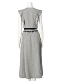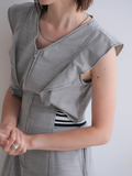 フリルスリーブ部分は甘くなりすぎないようにフリル分量を抑えて、スクエアシルエットに仕上げました。