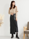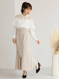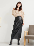 たっぷりとしたギャザーフリルは低めの位置にデザインする事で甘くなりすぎず大人っぽい印象に。