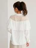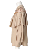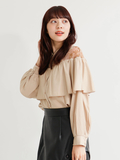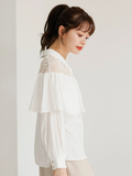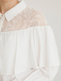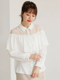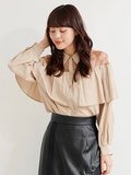 ショルダー部分の切り替えデザインで程よい抜け感を演出するフリルブラウス。