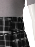 ウエスト部分にはバイカラーのパイピングがアクセントになっており、両サイドのバックルベルトでサイズ調節も可能。