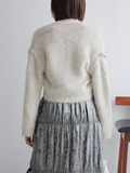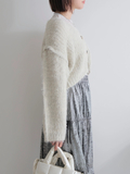 起毛感のあるフェザーニットが柔らかく、フェミニンなムードを演出するカーディガン。