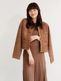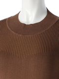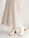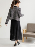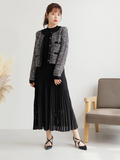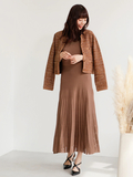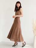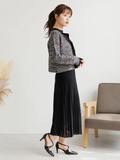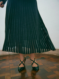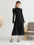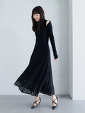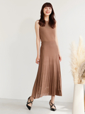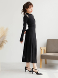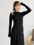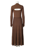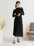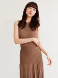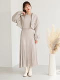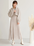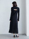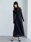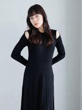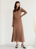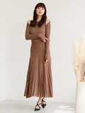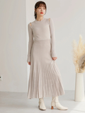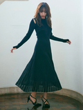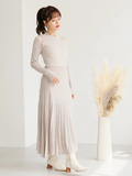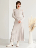 シアー糸を組み合わせて表現したプリーツスカートが印象的なニットワンピース。