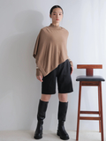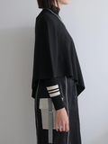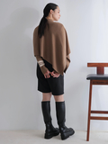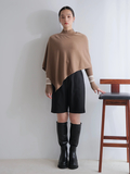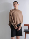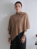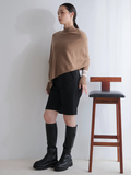 ●アシンメトリーケープとタイトリブニットのセットアイテム。