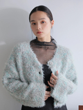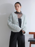 【繊細に煌めくラメフェザーニットカーデトップス】