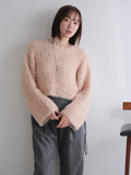 ●3種類の糸を組み合わせて表現した立体感のある素材がポイントのニットトップス。