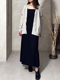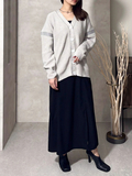 ●鎖骨ラインが綺麗に見えるVネックで、襟ぐりの開き具合が深すぎないので、ボタンを全て閉じてトップスのようにも着こなせる。