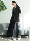 ●トップスと同素材を使用したハーフスリーブドロストジャケット(品番:002643200020)を羽織ってモードでカジュアルな雰囲気をプラス。