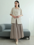 ●ミニマルなトップスと軽やか素材のボリュームスカートのメリハリのあるシルエットがポイント。