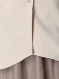 ●肌見せが気になる方にはシャーリングシアーニットカーデ(品番:002643160010)の合わせもおすすめ。